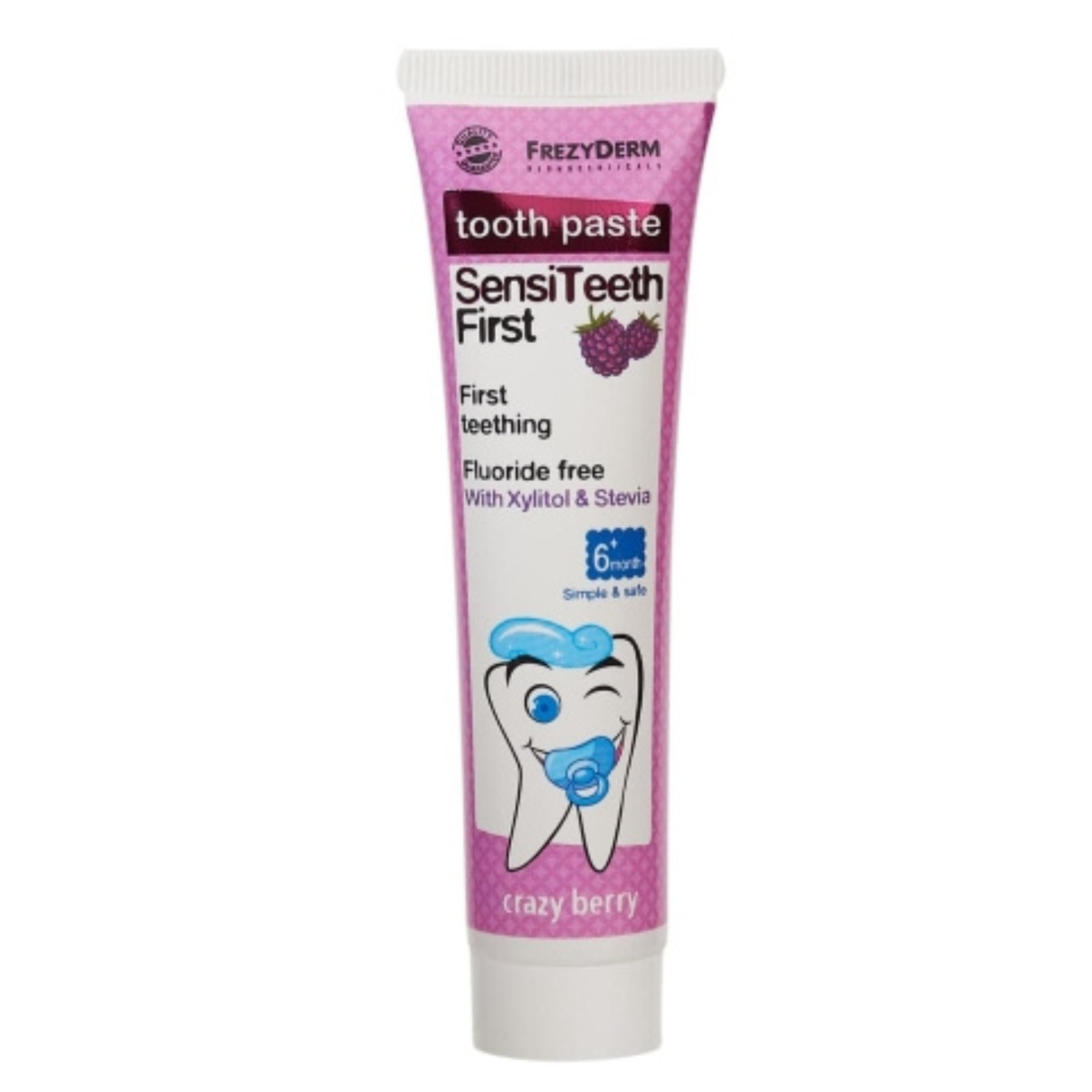 Дитяча зубна паста FrezyDerm Sensiteeth First без фтору, від 6 місяців смак чорниця, 50 мл