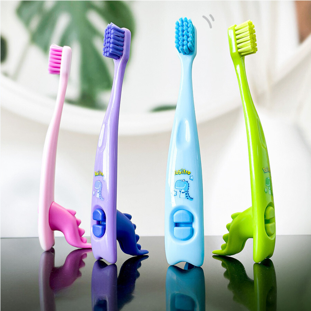 Функціональна ручка, яку зручно тримати маленьким ручкам. А ще, цю щітку виділяє грайливий дизайн. Ручка з хвостом динозавра тримає щітку у вертикальному положенні та є веселою головоломкою. Діти люблять чистити зуби цією яскравою веселою зубною щіткою!