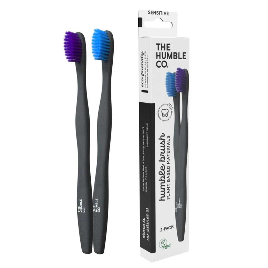 Щітка The Humble Co на рослинній основі 65%, яка виглядає і відчувається як звичайна пластикова зубна щітка. Рукоятка виготовлена з використанням пшеничного крохмалю як ключового інгредієнта, а щетина виготовлена з високоякісного нейлону- 6 від Dupont, що не містить бісфенолу А.