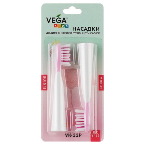 Насадки Vega Kids VK-11Р Junior для дитячої звукової зубної щітки VK-500Р - просте і якісне очищення дитячих зубів і ясен без зусиль і навичок