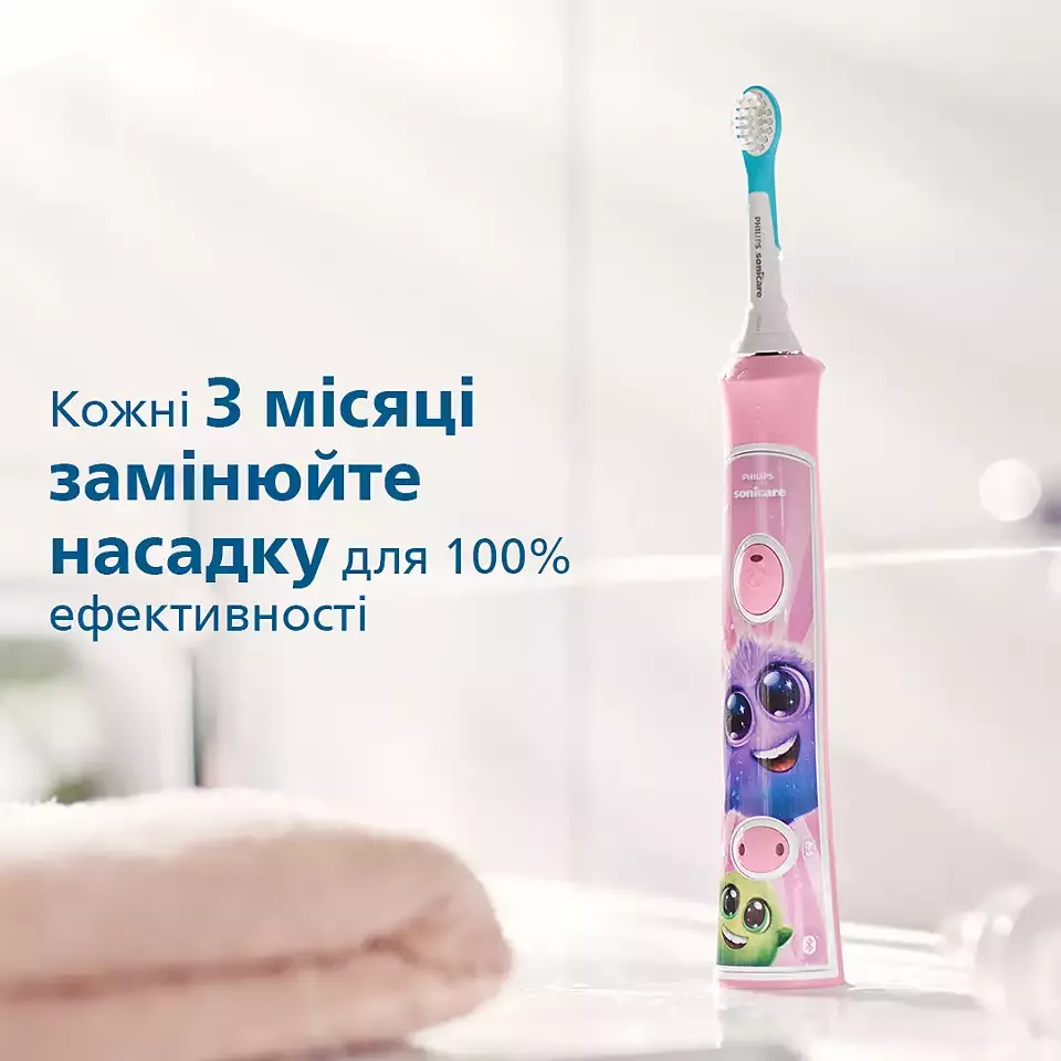 Підходить для будь-якої зубної щітки із знімною насадкою Philips Sonicare. Насадки для щітки Philips Sonicare For Kids можна встановлювати на ручку щітки і знімати для надійної фіксації та легкого догляду й чищення.