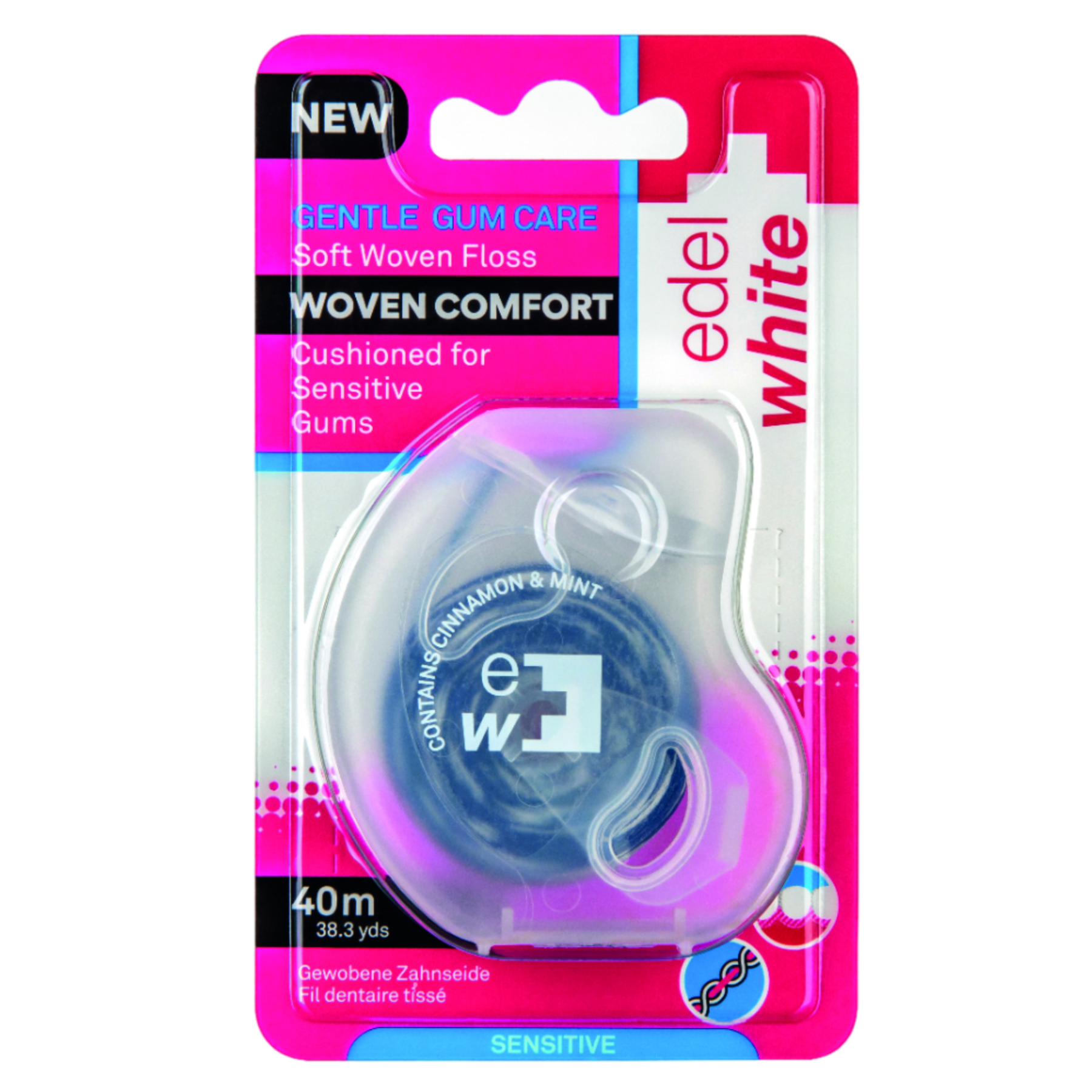 Зубна плетена нитка-флос Edel+White woven comfort, для чутливих ясен, смак кориця-м'ята, 40 м