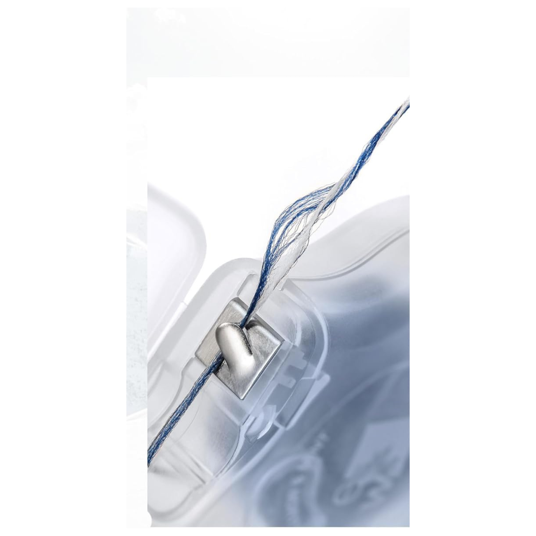 Плетена нитка з присмаком м'яти та кориці поєднує в собі м’якість та високу очищувальну здатність. Завдяки сплетінню чотирьох волокон вона має більший об’єм, що дозволяє їй щільно прилягати до зубів і надійно утримувати видалений наліт. Мінімальна кількість воску забезпечує природне відчуття під час використання, а відсутність PFAS гарантує безпеку для здоров’я. Рекомендовано для широких міжзубних проміжків та чутливих ясен. Не застосовувати при наявності брекет-систем та імплантів.