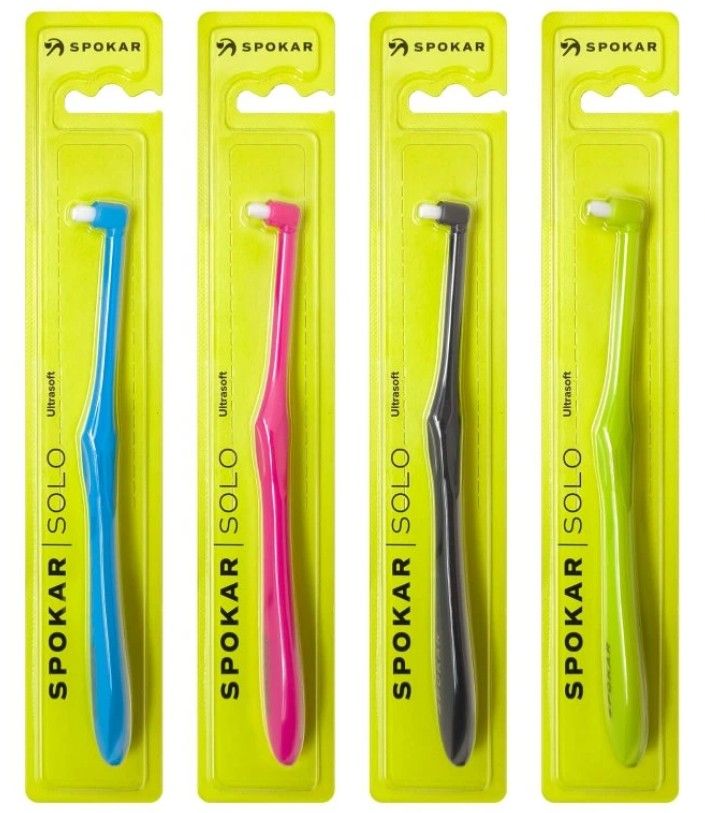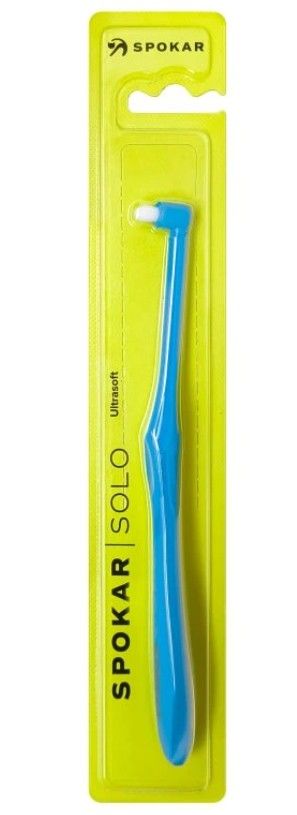 Щітка з одним пучком або соло SPOKAR SOLO — ідеальний помічник для ретельного очищення зубів там, де звичайна зубна щітка не дістається. Вона має невелику головку з одним пучком якісних щетинок із округлими кінцями, які дозволяють м'яко, але дуже ефективно очищати без подразнення ясен.