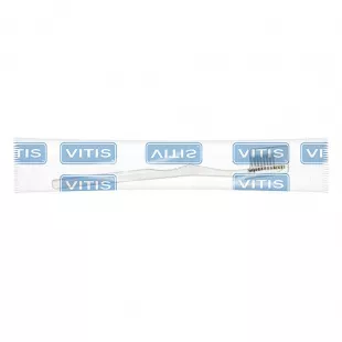 Зубна щітка VITIS MEDIUM має рельєфну очисну поверхню та середню жорсткість. Призначена для щоденного чищення зубів для дорослих людей, які не мають значних змін структури зубів чи ясен. Звичайна ромбовидна головка для доступу до важкодоступних ділянок ротової порожнини. Нитки середньої жорсткості з хвилястим профілем повторюють контур ясен і полегшують доступ до міжпроксимальних проміжків. Податлива шийка, що дозволяє згинати її до тих пір, поки вона не придбає положення щітки, яка найкраще адаптується до ротової порожнини, полегшуючи доступ під час чищення зубів. Анатомічна ручка з протиковзкими канавками для зручності використання. Захисний ковпачок утримує нитки в групі та в оптимальних гігієнічних умовах.