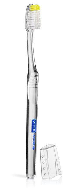 Зубна щітка VITIS SENSITIVE призначена для щоденної гігієни порожнини рота для пацієнтів із чутливими зубами, гінгівітом, делікатними яснами або рецесією ясен.