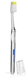 - Рівна очисна поверхня – призначена для догляду за травмованими та чутливими зубами та яснами. Ніжні м’які закруглені щетинки з високоякісного матеріалу Tynex®. Гнучка ручка "анатомічної" форми зручно лежить у руці. Атравматична закруглена головка має оптимальний розмір і легко справляється із чищенням у важкодоступних ділянках.