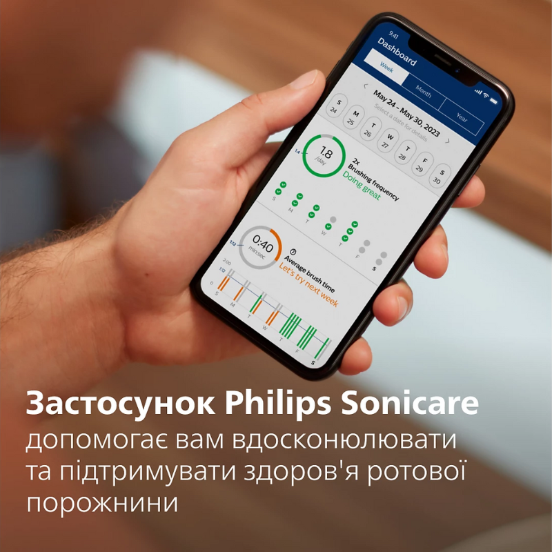 Досягніть своїх цілей у догляді за порожниною рота за допомогою зубної щітки й додатка Sonicare. Вони ідеально поєднуються, щоб забезпечити чищення зубів за вказівками, поради й підказки, а також персоналізований для вас контент. Разом вас не зупинити.