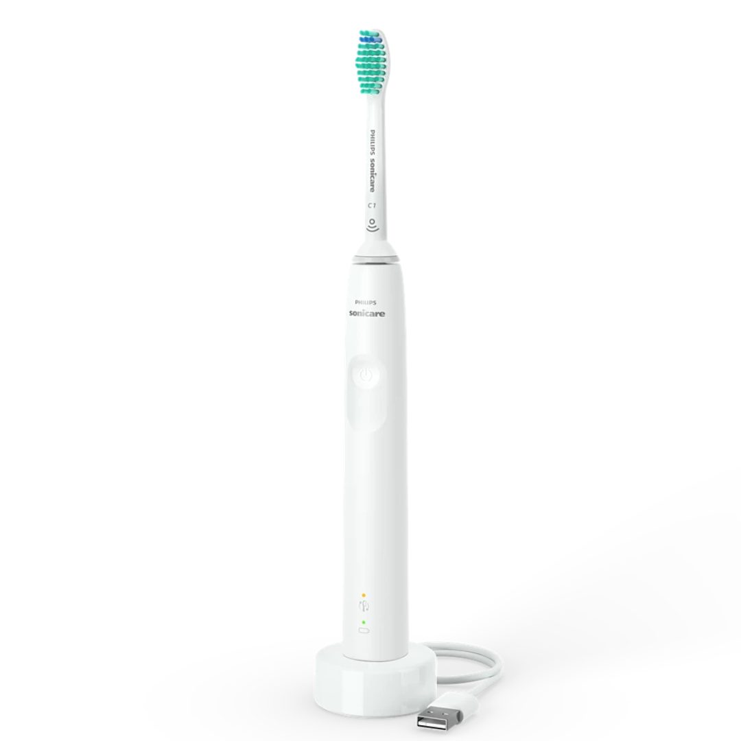 Клінічно доведено, що електрична зубна щітка Sonicare із вдосконаленою звуковою технологією видаляє втричі більше нальоту у порівнянні зі звичайною зубною щіткою*. Вона видаляє наліт із зубів та вздовж лінії ясен, водночас захищає ваші ясна.